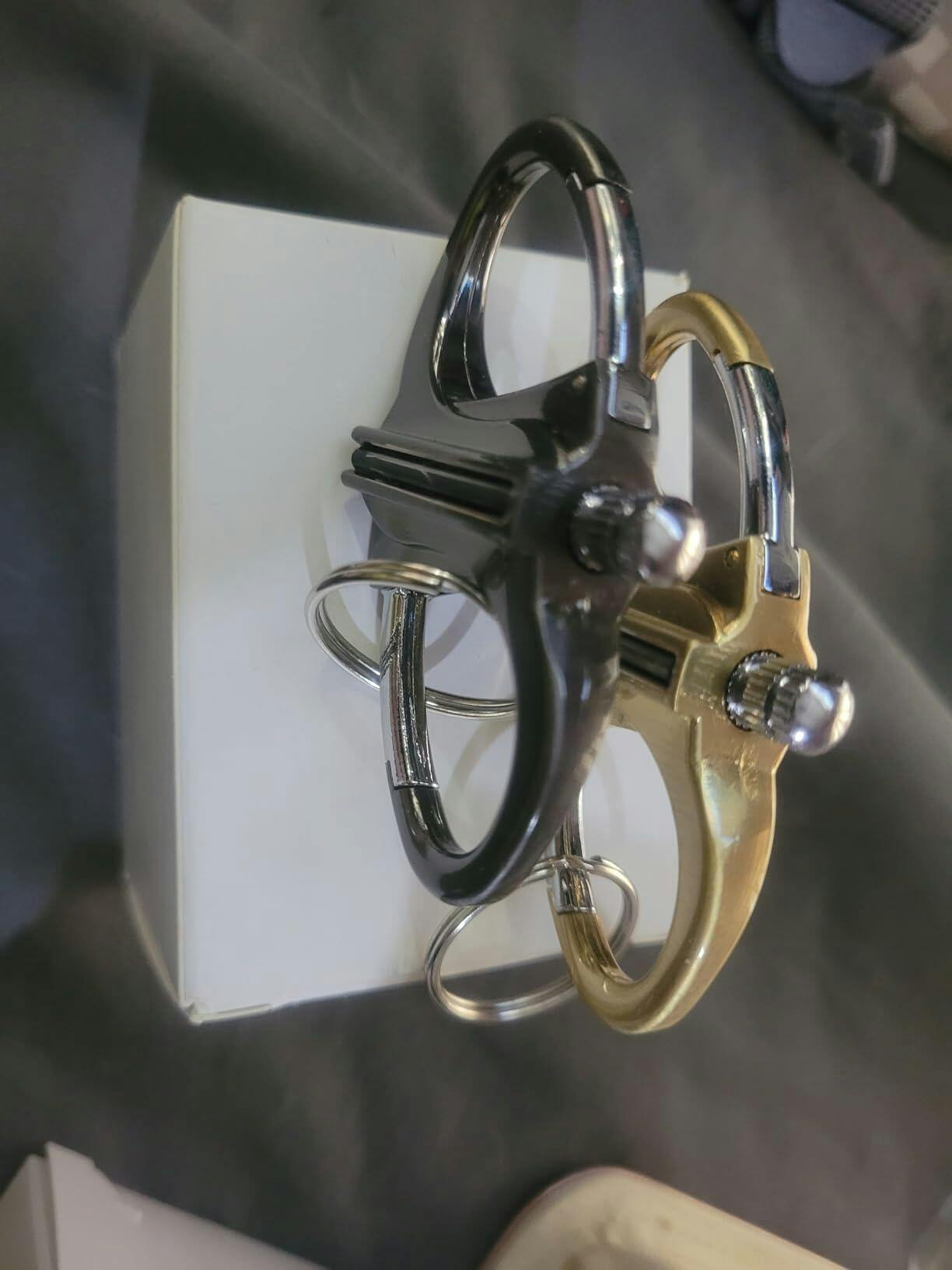 - Includes: Metal keychain with carabiner hook